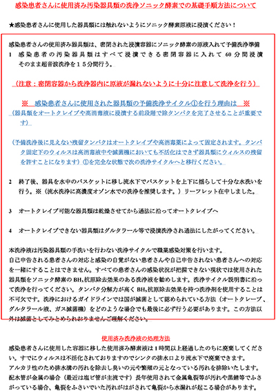 感染患者さんに使用済み汚染器具類の洗浄ソニック酵素での基礎手順方法について